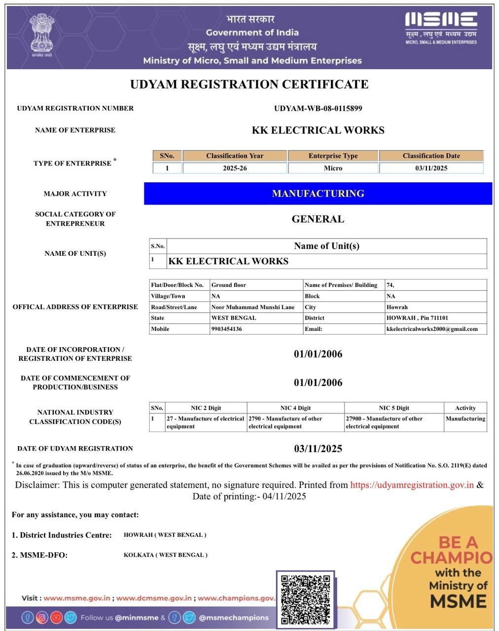 We are proud to announce that our business is officially certified under the Micro, Small, and Medium Enterprises (MSME) Development Act. This certification from the Government of India acknowledges our dedication to growth, compliance, and quality operations within the specified scale and investment limits. As an MSME-Certified enterprise, we leverage this recognition to access various governmental schemes, secure financing, and contribute actively to the nation's economic development, all while maintaining our focus on delivering high-quality products/services to you, our valued customer.